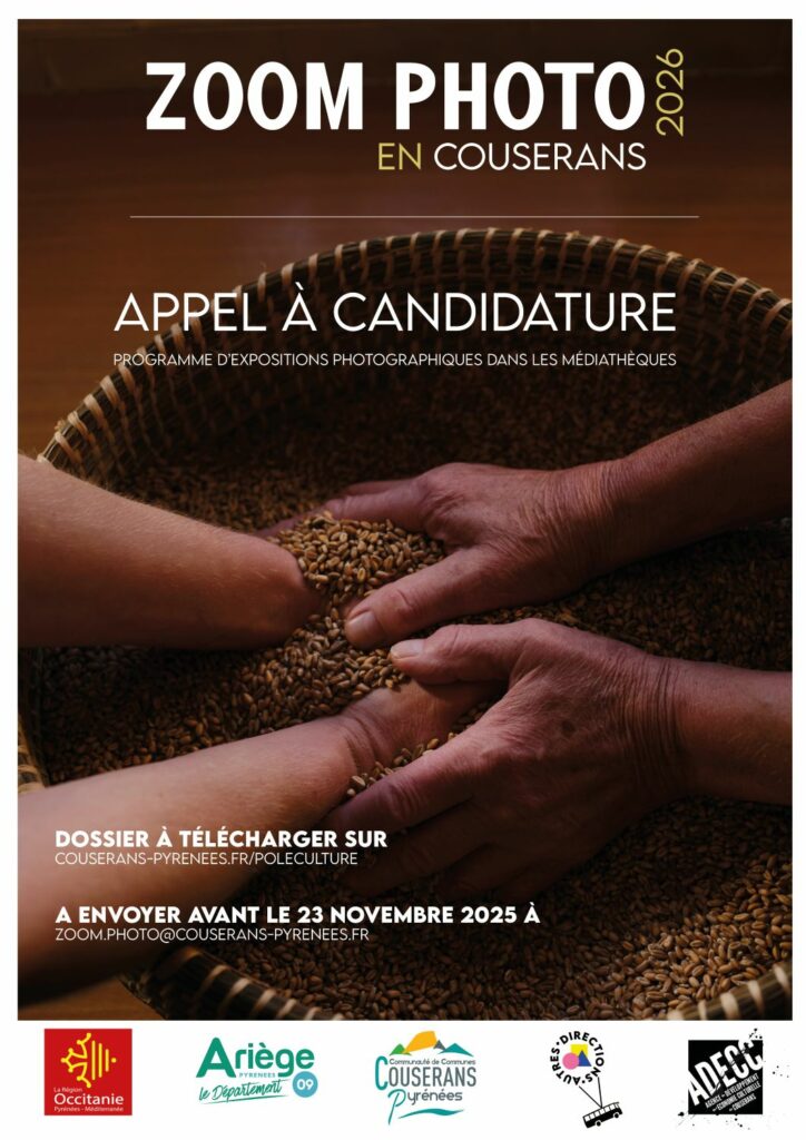 L’ensemble des éléments de l’appel est à adresser avant le 23 novembre 2025 inclus, uniquement par mail, à l’adresse suivante : zoom.photo@couserans-pyrenees.fr